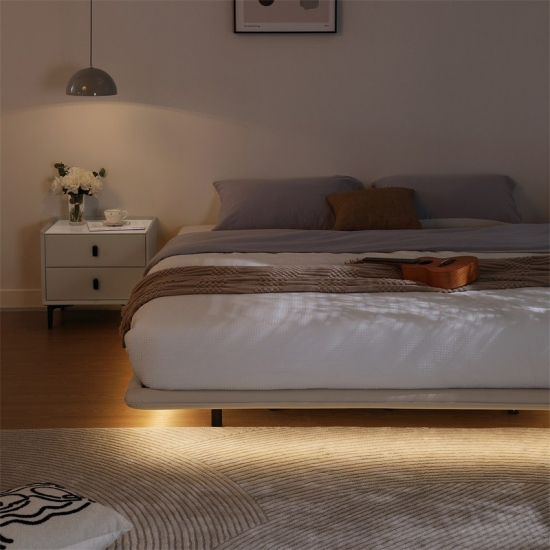 Zero-Gravity Elegance Galaxy White Floating Double Bed BC535-A Read More