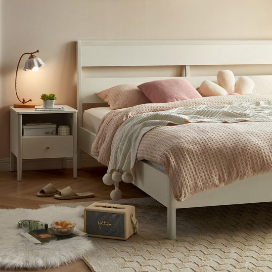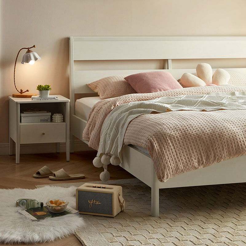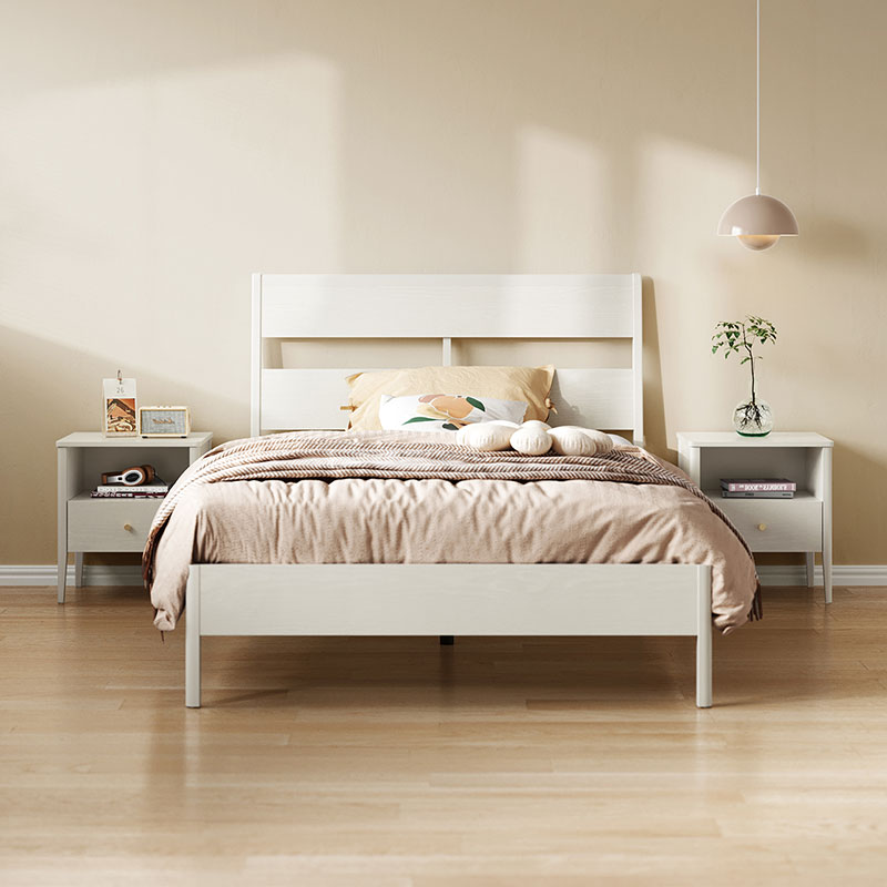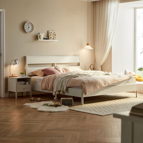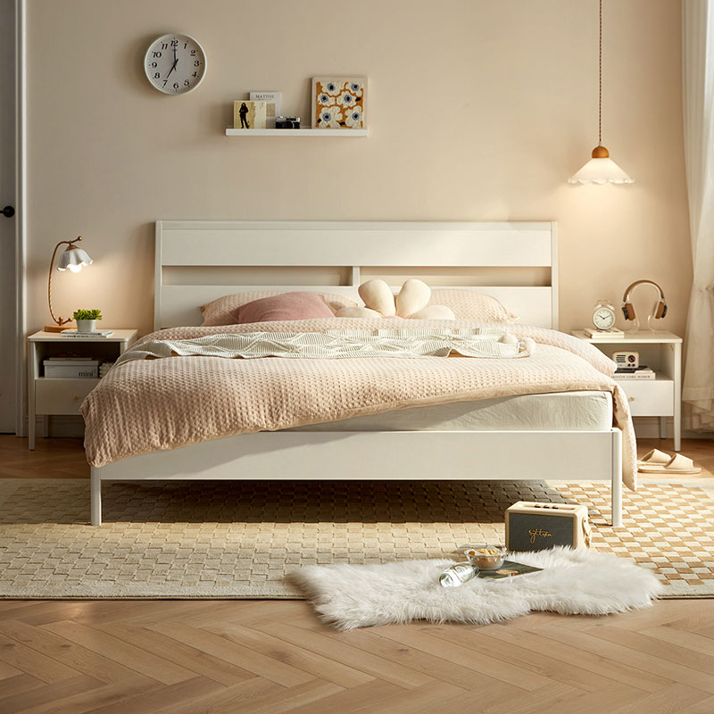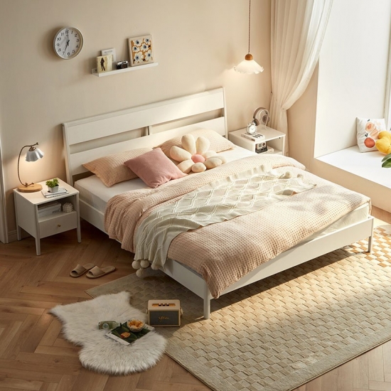 7LINSY Nordic Style Bedroom Furniture White Color King Size Bed with Wood OU1A-B
