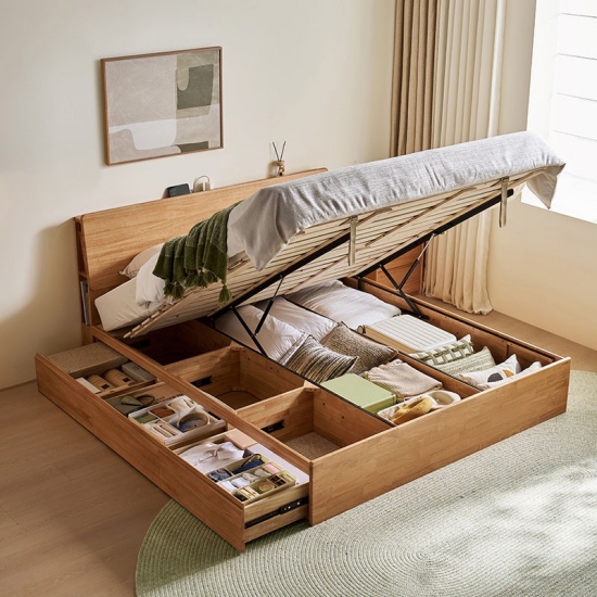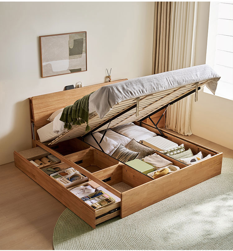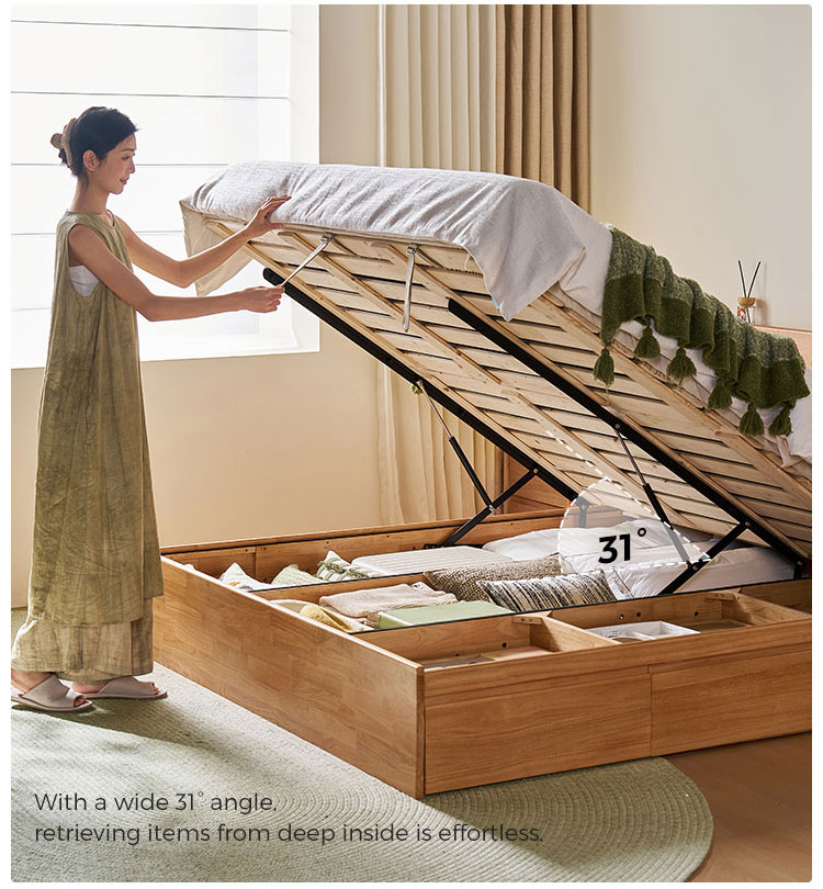 Maximize your bedroom's potential with our Premium Solid Wood Pneumatic Storage Bed. Designed for modern living, this high-box bed combines the timeless beauty of natural wood with a powerful hydraulic system for effortless under-bed access. The integrated breathable slat base ensures optimal air circulation, while the massive storage capacity offers a smart solution for space-constrained environments.