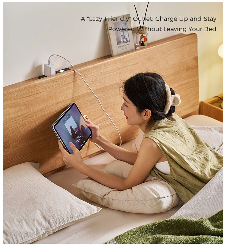 7LINSY Premium Hydraulic Solid Wood Storage Bed with Socket