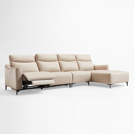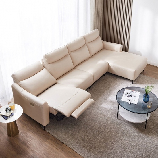 7LINSY recliner chair sofas simple living room leather sofa with chaise S056