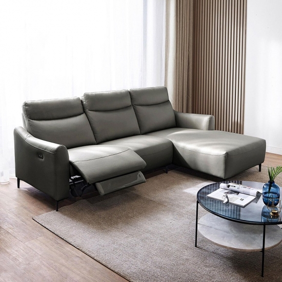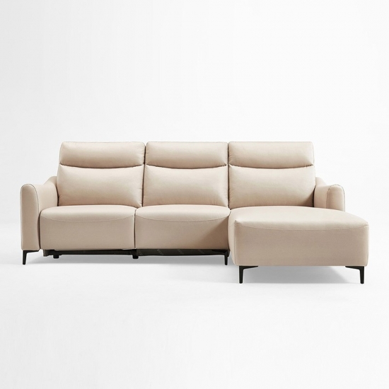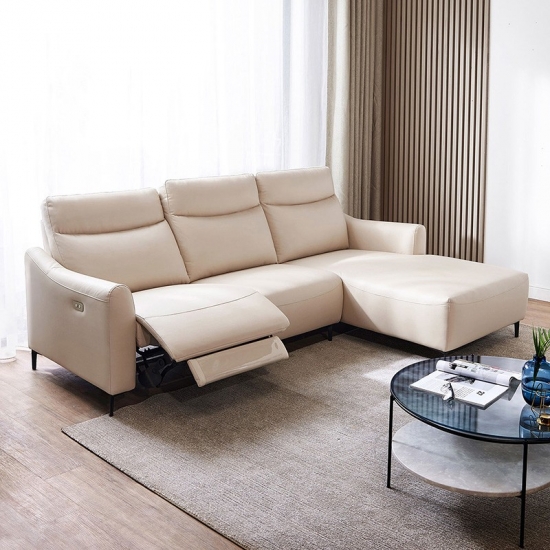 Recliner sofa with chaise Snuggles up against its soft, inviting fabric with buttoned back and hit the recline to relax your feet. It's just the chance for chilling out!