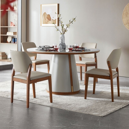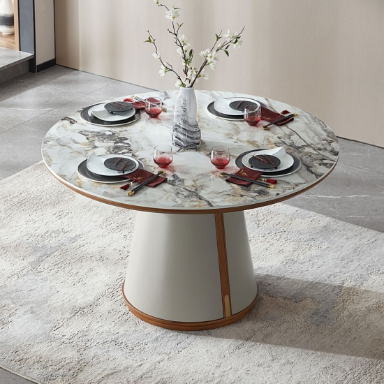 7Linsy Round luxury White Marble Top dining table with Chairs LP1R-A