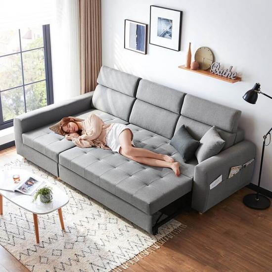 Multi-function sofa: Designed to Use as a Bed-Sleeper Sectional just simply two steps, it becomes a bed. Pull out sleeper sofa bed, just a simple pulling out, it becomes a twin size bed, it can be the perfect length for a nap.
