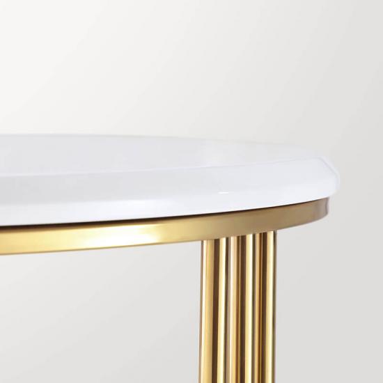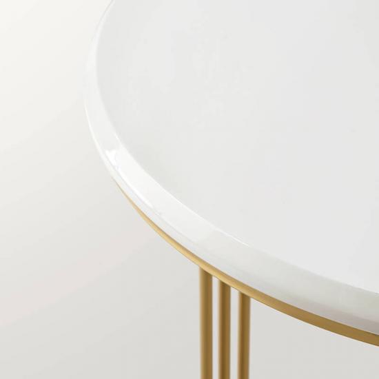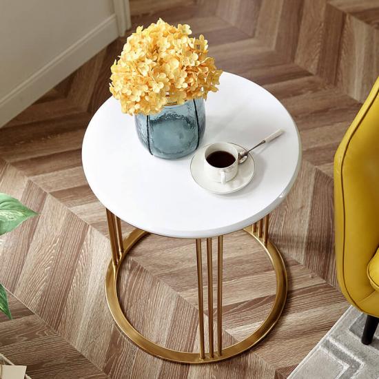 7Linsy Side Table, Round White Modern Home Decor Coffee Tea with Brass Gold Metal Frame End Table for Living Room Bedroom and Balcony