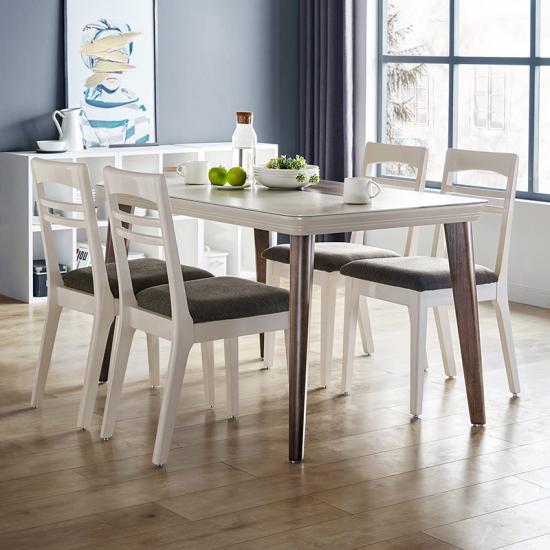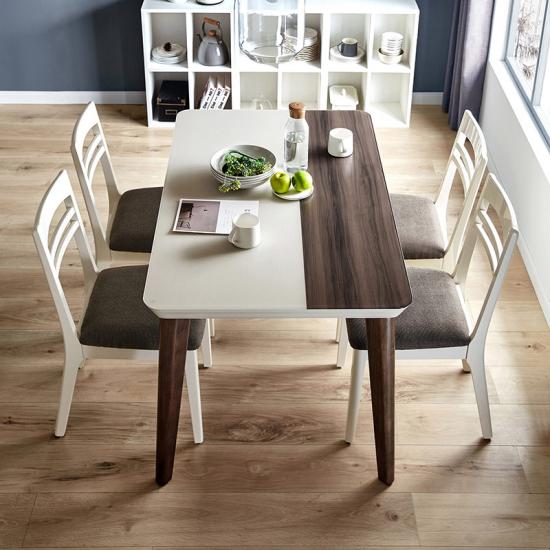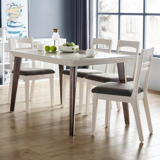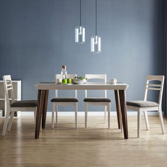 Modern Dining Table Set for 4 Mid Century Style, Beech and White Color LS179R1-AIf you are interested in our products and want to know more details,please leave a message here,we will reply you as soon as we can.