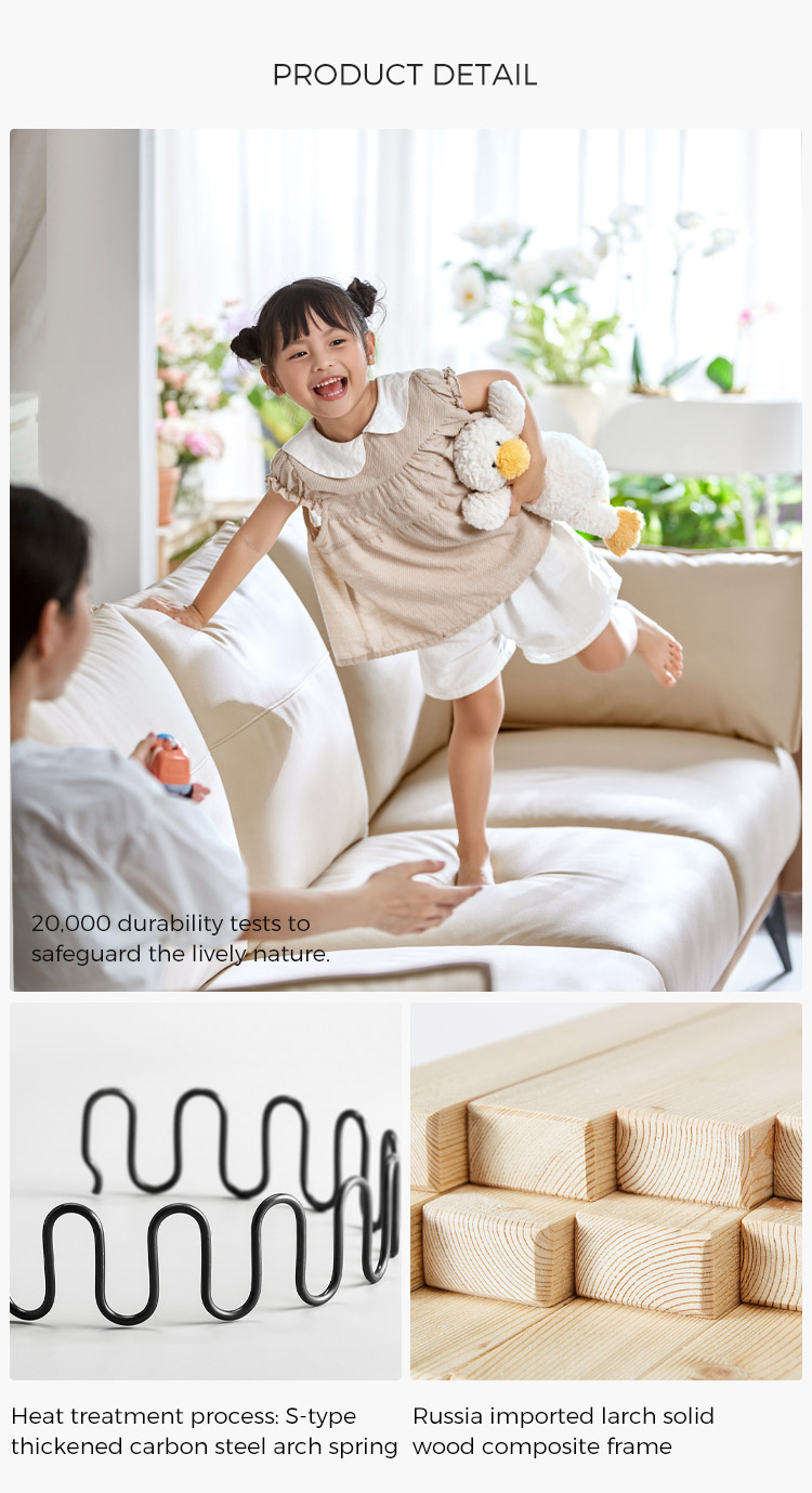Solid wood frame+Sponge Seat+Anti-Stain Tech Fabric |