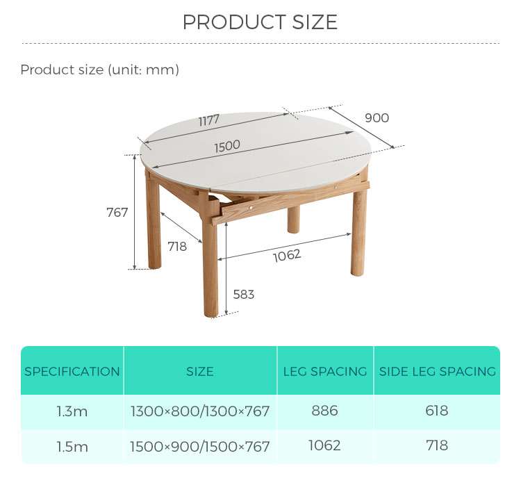 Smart Space-Saving Design: Seamlessly transitions from a compact 1.5-meter console (ideal for 2-4 people) to an expanded table for 6-8 guests. Reclaim your floor space when you need it most.