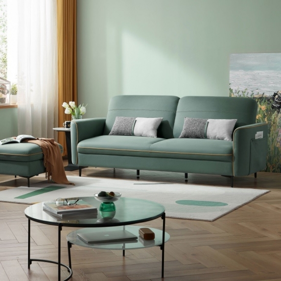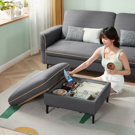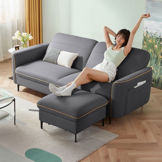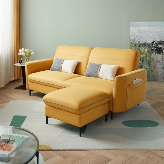 7LINSY Square Arm Apartment Fabric Sofa Bed two-purpose Couch with Ottoma S136-A