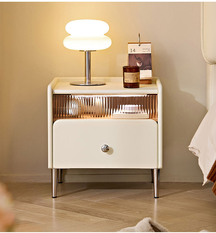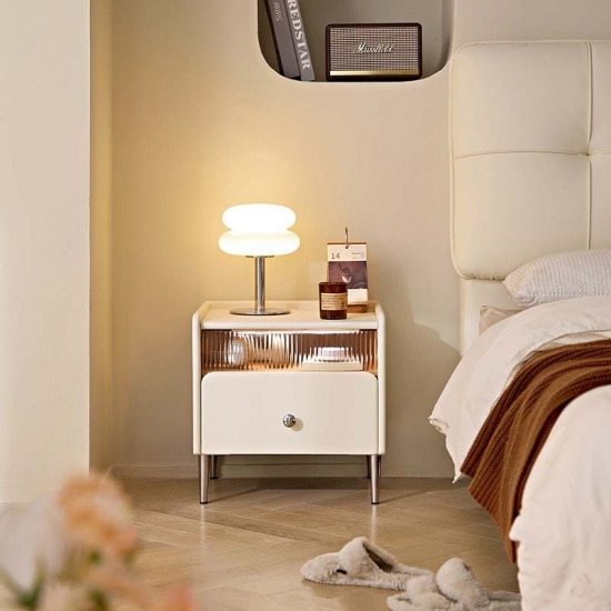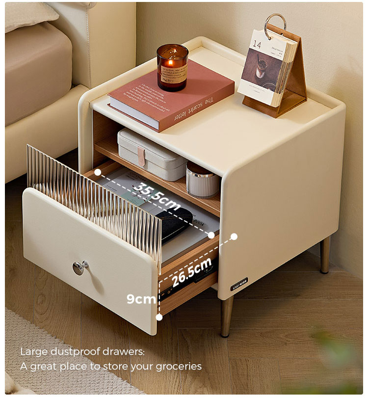 7LINSY Storage Bedroom Furniture Cheese White Bedside Table with Drawer TD139-A