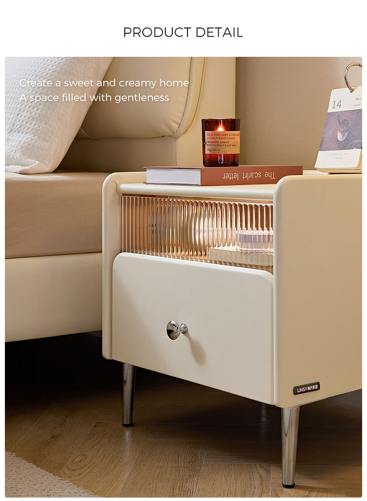 LINSY Storage Bedroom Furniture Cheese White Bedside Table with Drawer TD139-A |