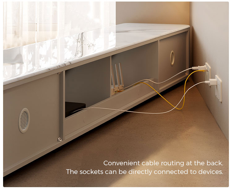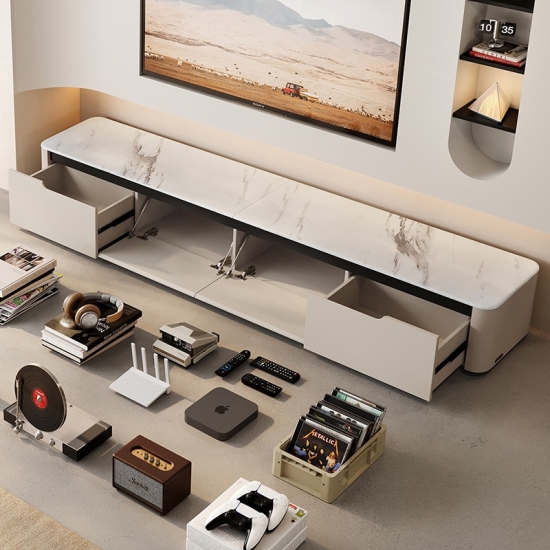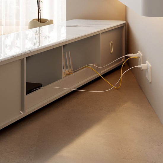 This sleek white console offers generous storage to organize your media essentials. Its clean, modern design and 2-meter width provide a perfect foundation for your TV and a tidy entertainment space. Looking at the details below.