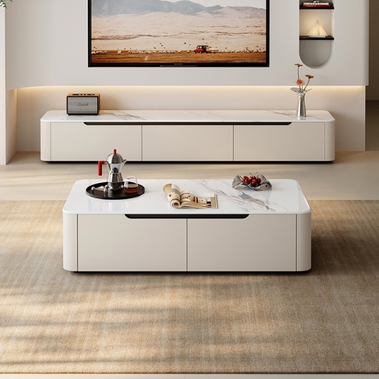 7LINSY Stylish White TV Stand with Ample Storage RI4M-E