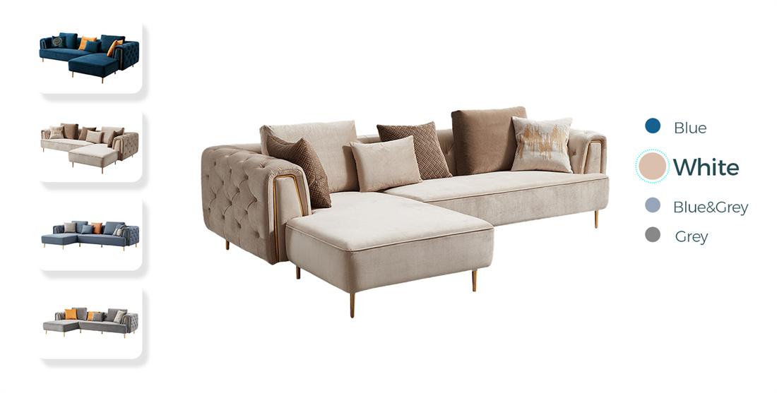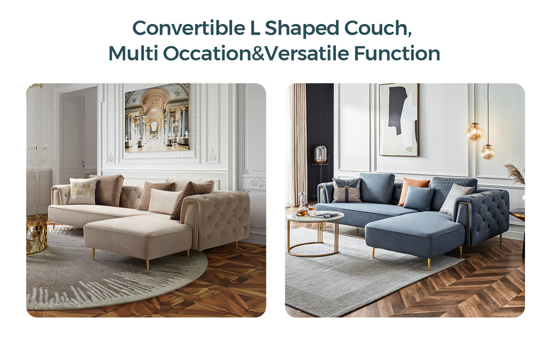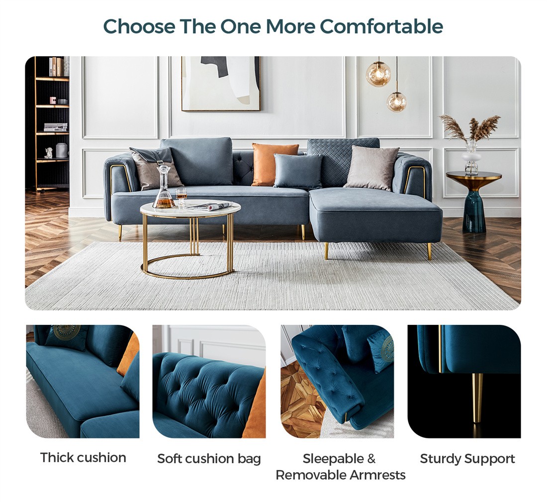 7LINSY Velvet Tufted Sofa Set Chesterfield L-Shaped Sofa RBC1K