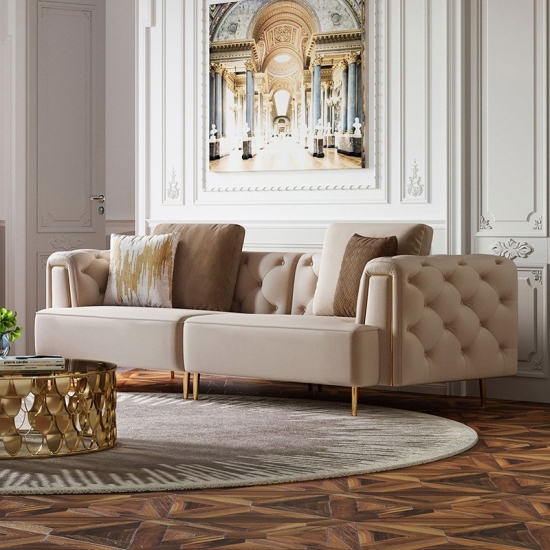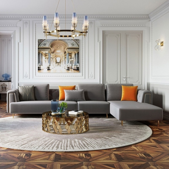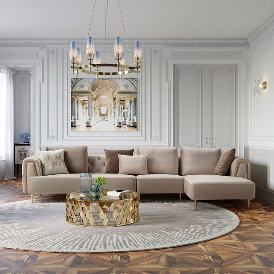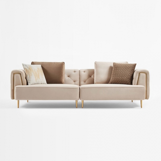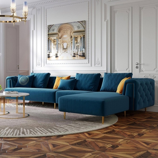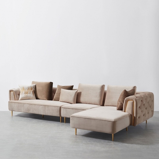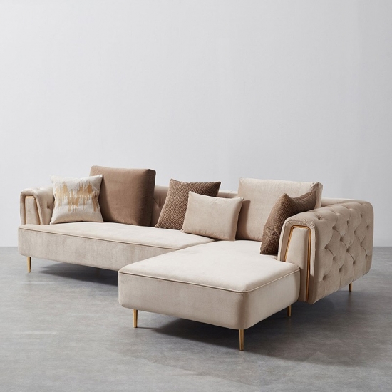 This Sofa style is our hot-selling style in the United Kingdom. Also, you can check our advertising on Liverpool Subway. Modern Velvet Fabric Tufted Section Sofa Set Deep buttoning on arms side. LINSY has strong strength as a sofa manufacturer in China. Welcome to join us and to be our distributor.