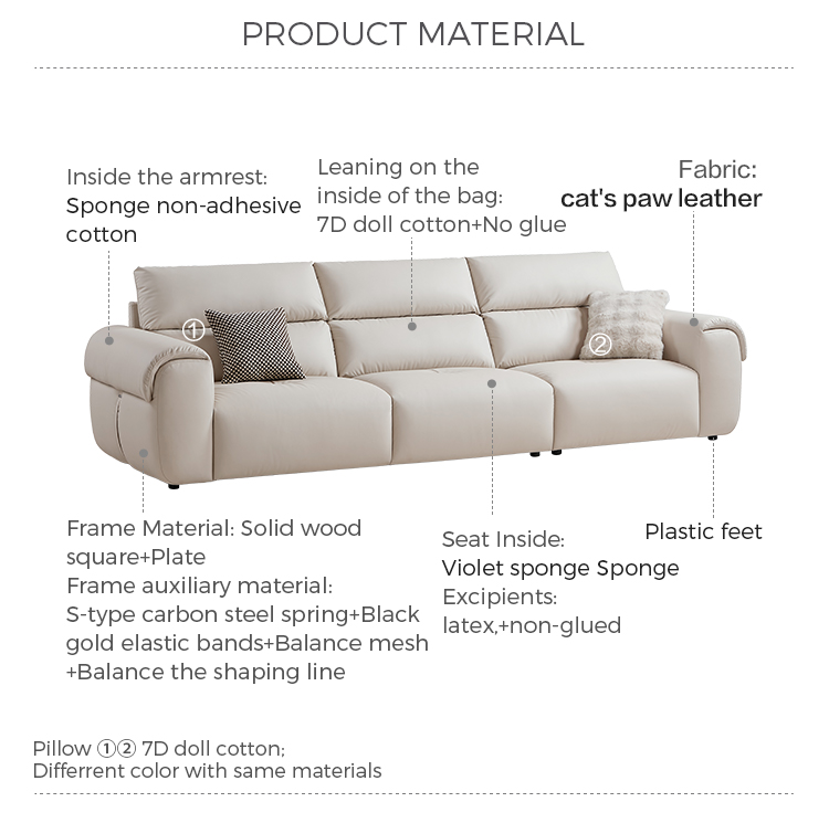 7LINSY Warm Sand Color 3 Seaters Leather Sofa BS539-A