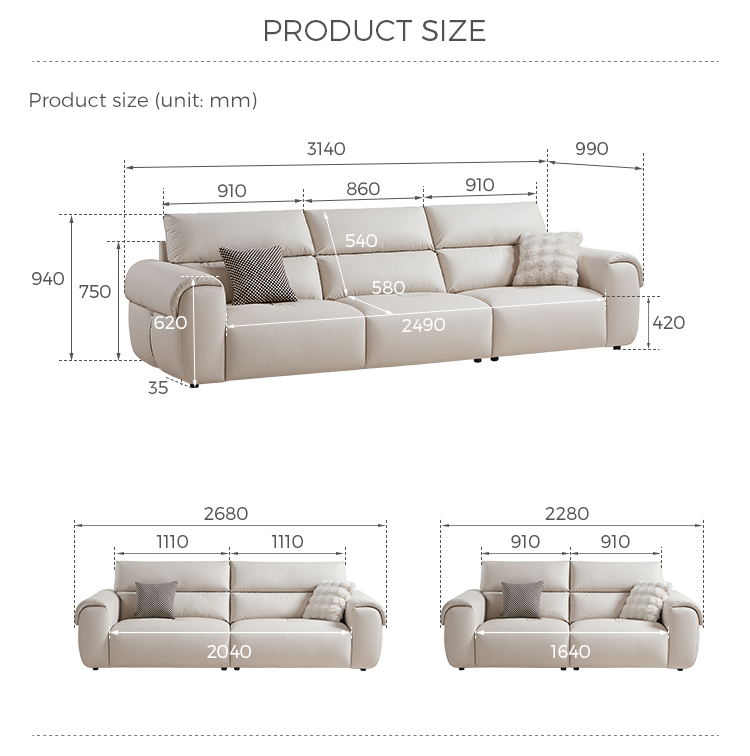 The sofa is stain-resistant and easy to clean, ensuring your sofa looks brand new for years to come. Choose from a range of colors to match your decor—classic black, rich brown, or chic grey. Why choose leather? Because it is naturally breathable, ages gracefully with a stunning patina, and hypoallergenic & perfect for homes with pets.
