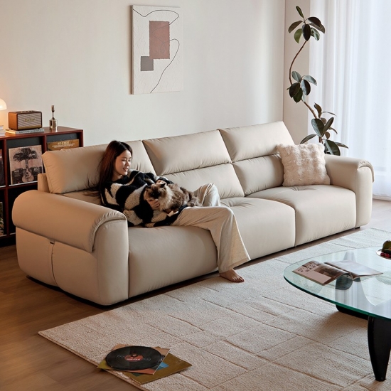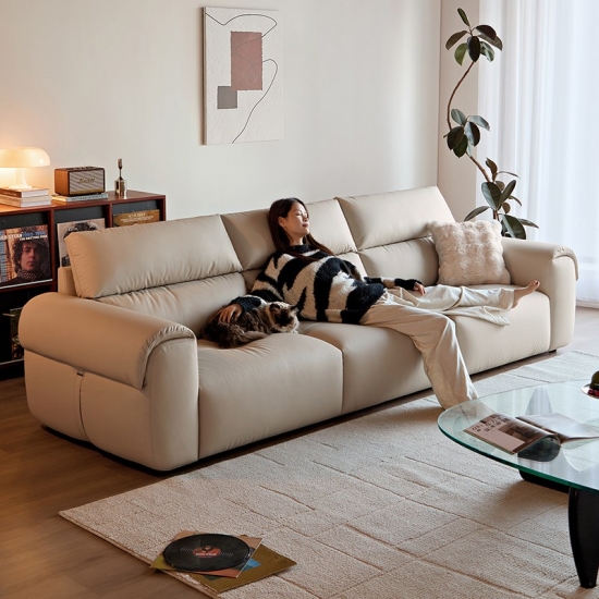 LINSY Warm Sand Color 3 Seaters Leather Sofa BS539-A |