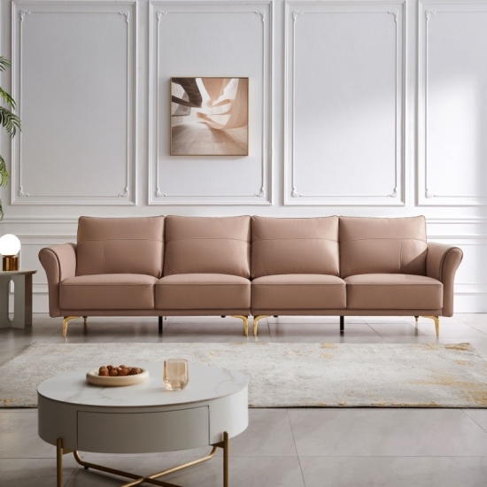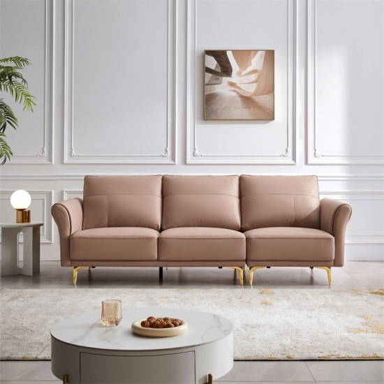 With it's art deco shape, the Deco Sofa uses its glam and maximalist design to fit in any space. This Sofa is covered in a waterproof material with electroplated gold legs. This sofa looks great in any home or hotel.