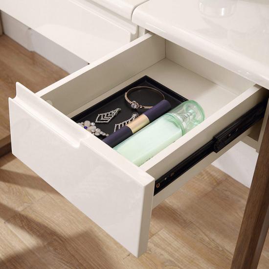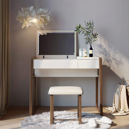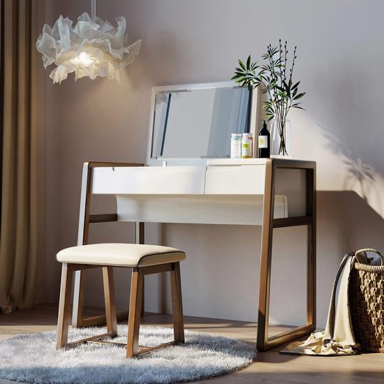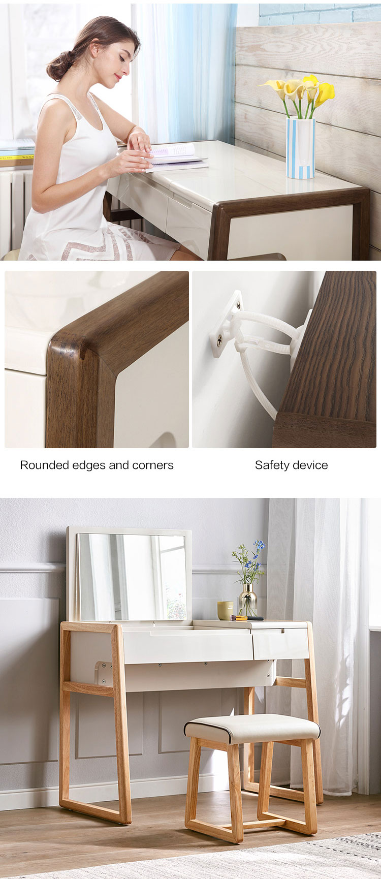 Combination eco friendly solid wood frame with E1 grade MDF makes this dressing table Indestructible and well connection.Arc corner, delicate craftsmanship, beauty and safety coexist.Storage drawers, let you bedroom orderly and clean.