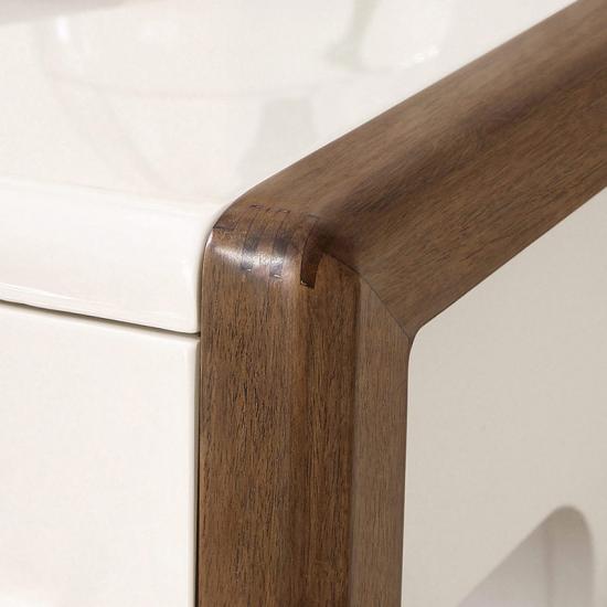 Next to the drawer, there’s a hinged lid that hides both mirror and practical compartments. Whether you use it as a dressing table, desk, or sideboard. LINSY has strong productive as a China Furniture Factory.