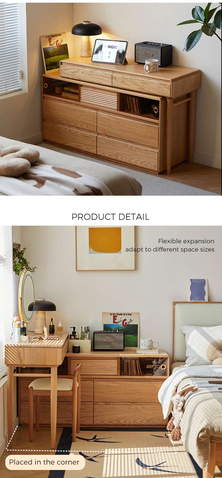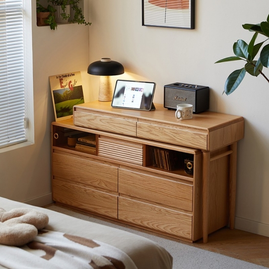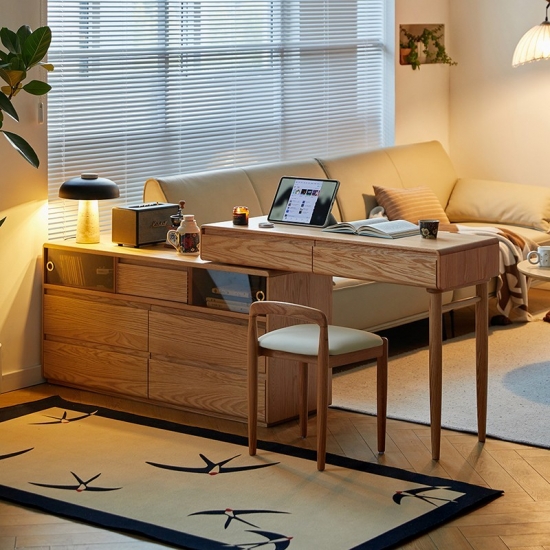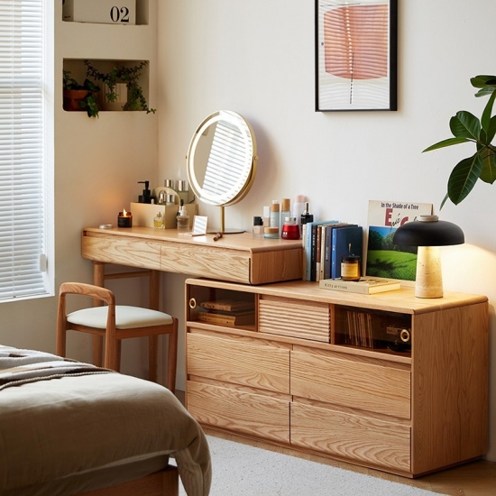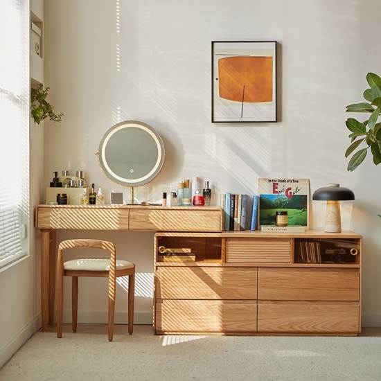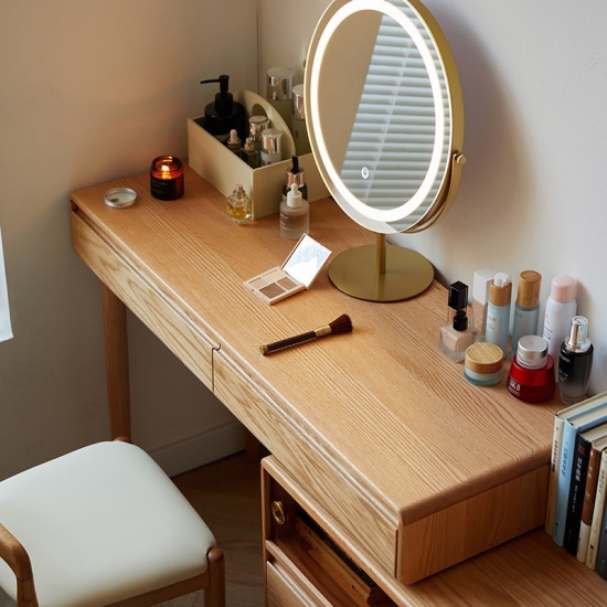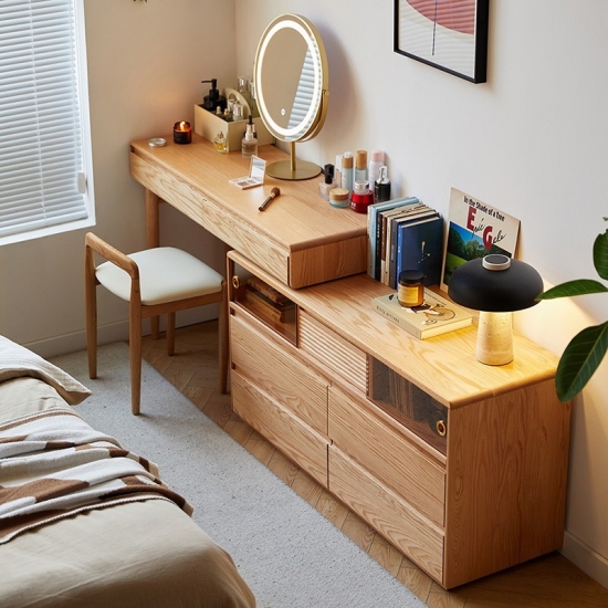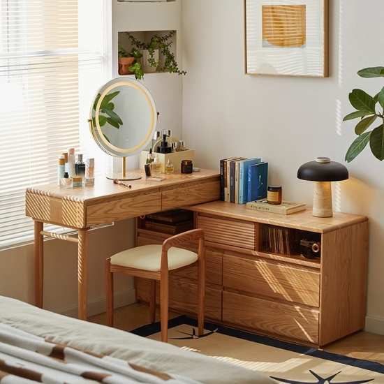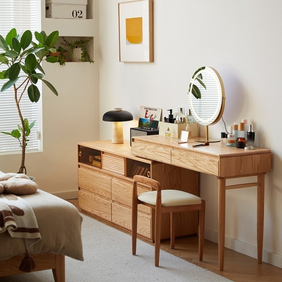 This new versatile and space-saving wooden dressing table featuring an innovative extendable design. Crafted from high-quality solid wood with a smooth natural and stained finish. This piece combines functionality with classic elegance. It will be a perfect choice for bedroom.