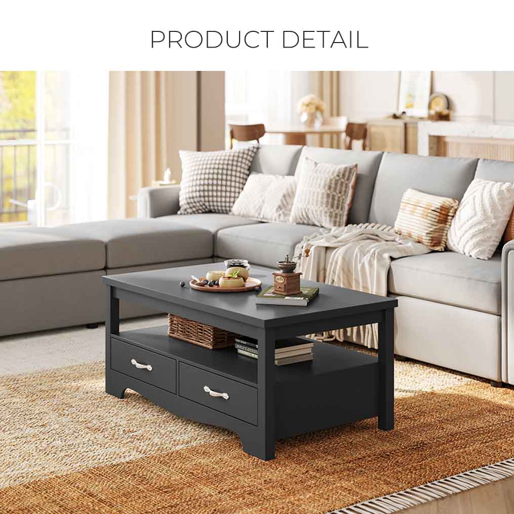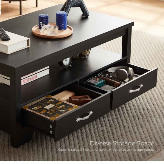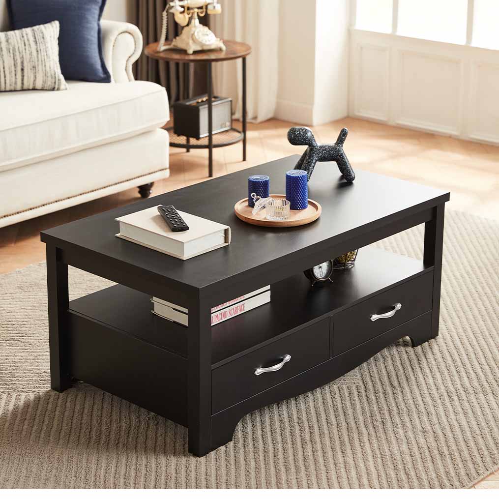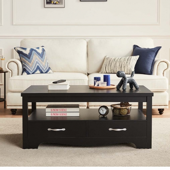 This is the black color rectangle wood coffee table with storage, can large suit your need in the living room and decor your industrial style.