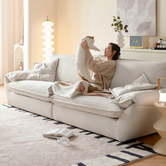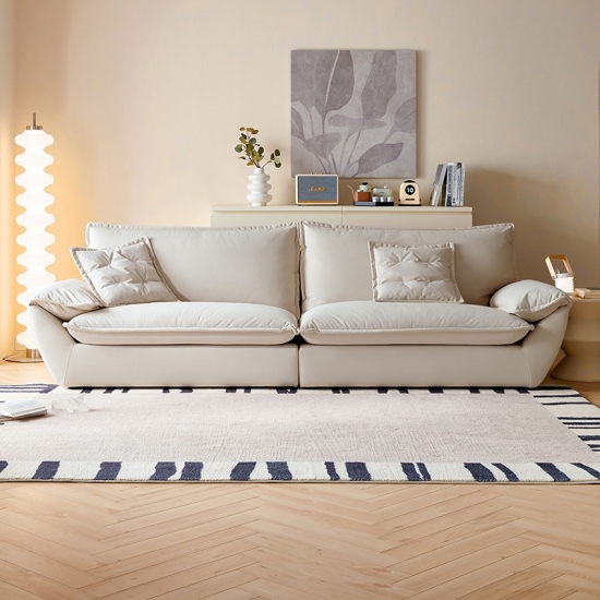 LINSY Modern Sofa Set Beige Color Leather Sofa with Chaise S158Next :