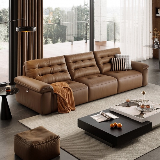 Our Dark Tea Leather Sofa is a masterclass in modern furniture design. By pairing a robust, exposed solid wood frame with the rich, deep tones of espresso leather, we’ve created a piece that is as much an architectural statement as it is a place of comfort. Come to have a look now.