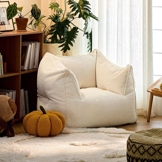 7Minimalist Cream White Bean Bag Lounger with Fabric TDY131-A