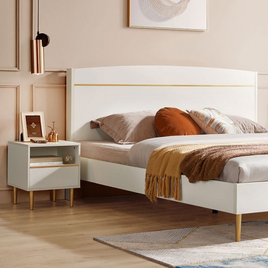 7Modern Bedroom Furniture White Color Panel Bed JH1A-A1