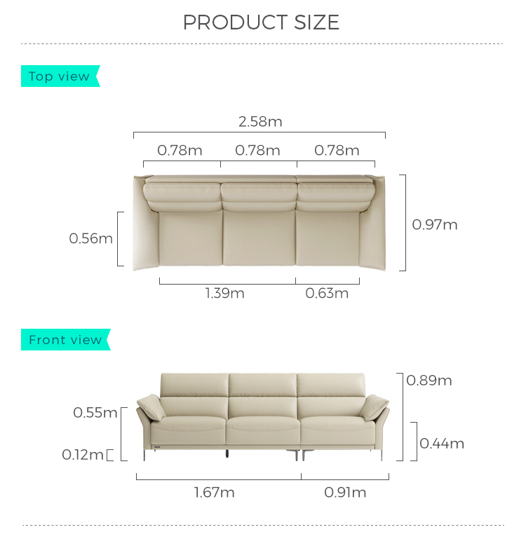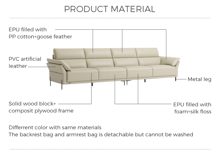 7Modern Beige Color Three Seat Leather Sofa Living Room Hotel Use BS258-A