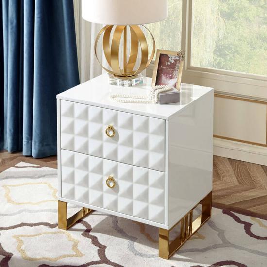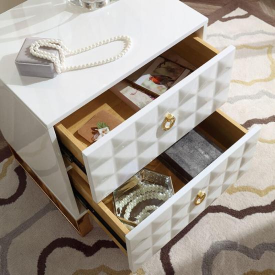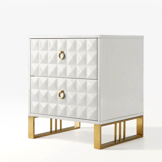 The hardware high feet of the White bedside tables with luxury gold-plating technique,corrosion-resisting.