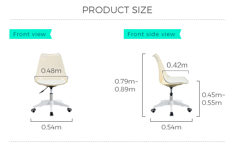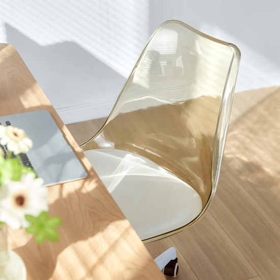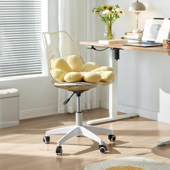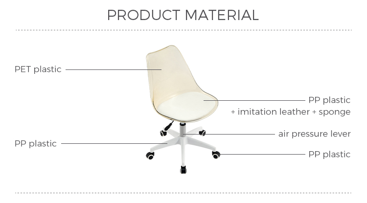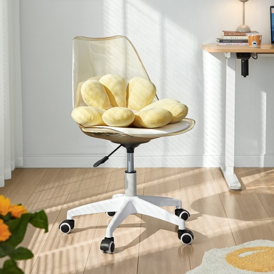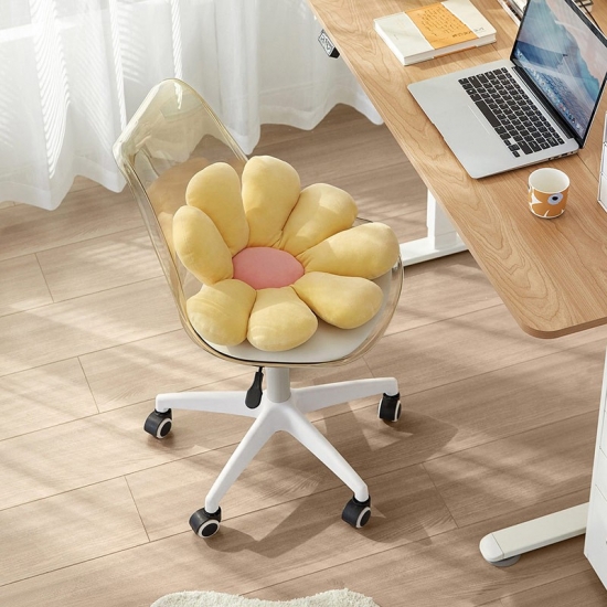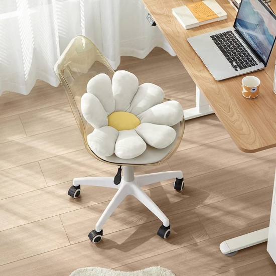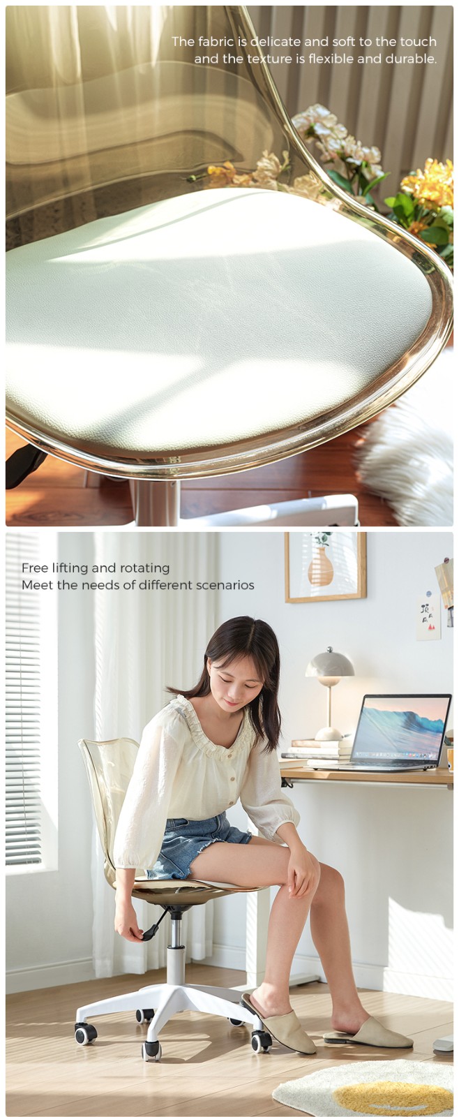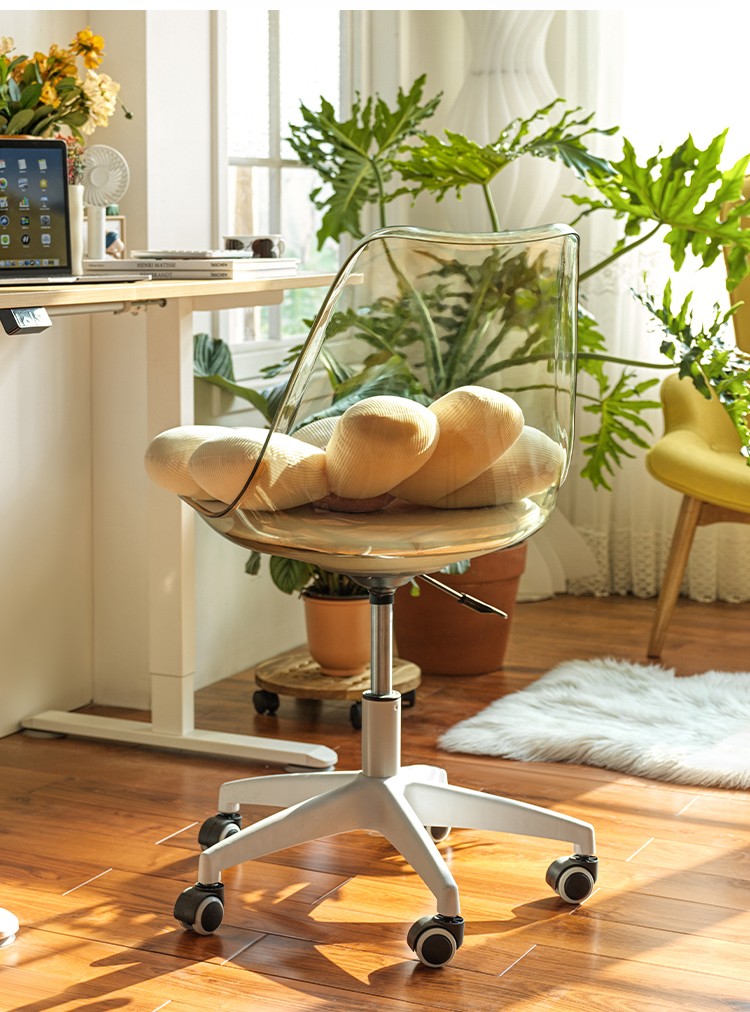 This cute office computer chair is made of high-quality acrylic, with high toughness, smooth surface, and easy cleaning. The new version of the acrylic chair adds a soft and easy-care pad. This design provides a comfy user experience and easy to maintain its cleanliness