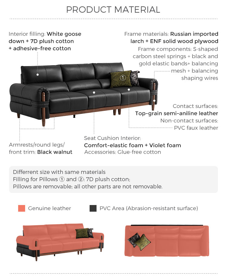 7Modern Deep Seat Leather Sofa with Wood Frame RQ5K-A