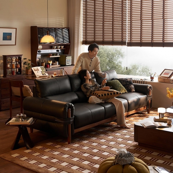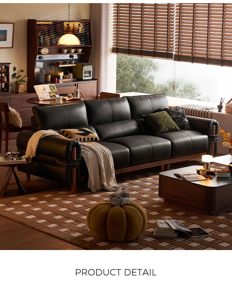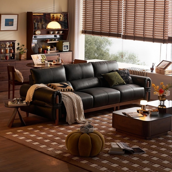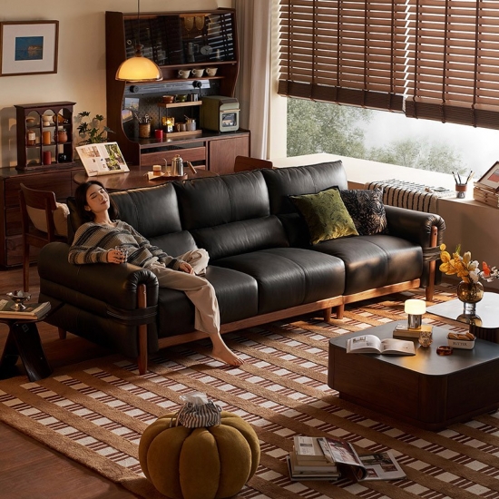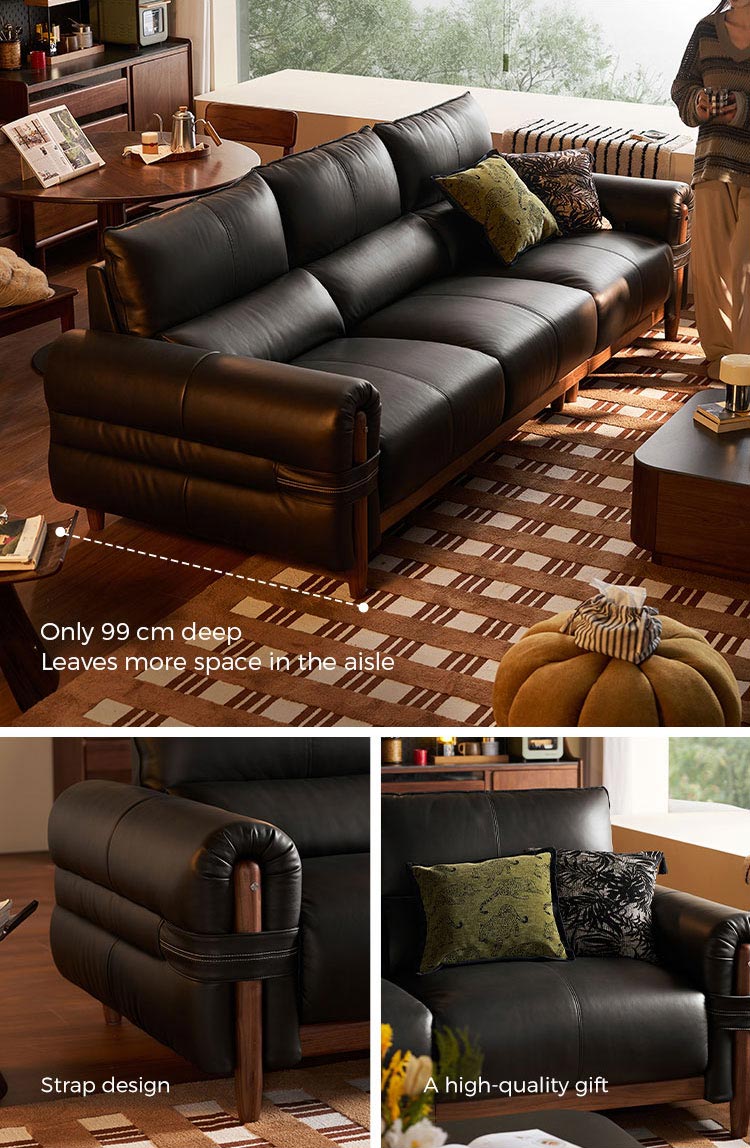Elevate your living space with our modern Dark Tea Leather Sofa, where luxury meets unparalleled comfort. Featuring an expansive 90cm seating depth, this sofa is crafted for those who prioritize relaxation without compromising on style. The premium leather surface is complemented by a robust solid wood frame in a rich walnut finish, ensuring both structural integrity and a high-end aesthetic.