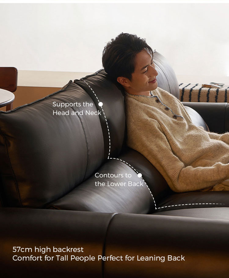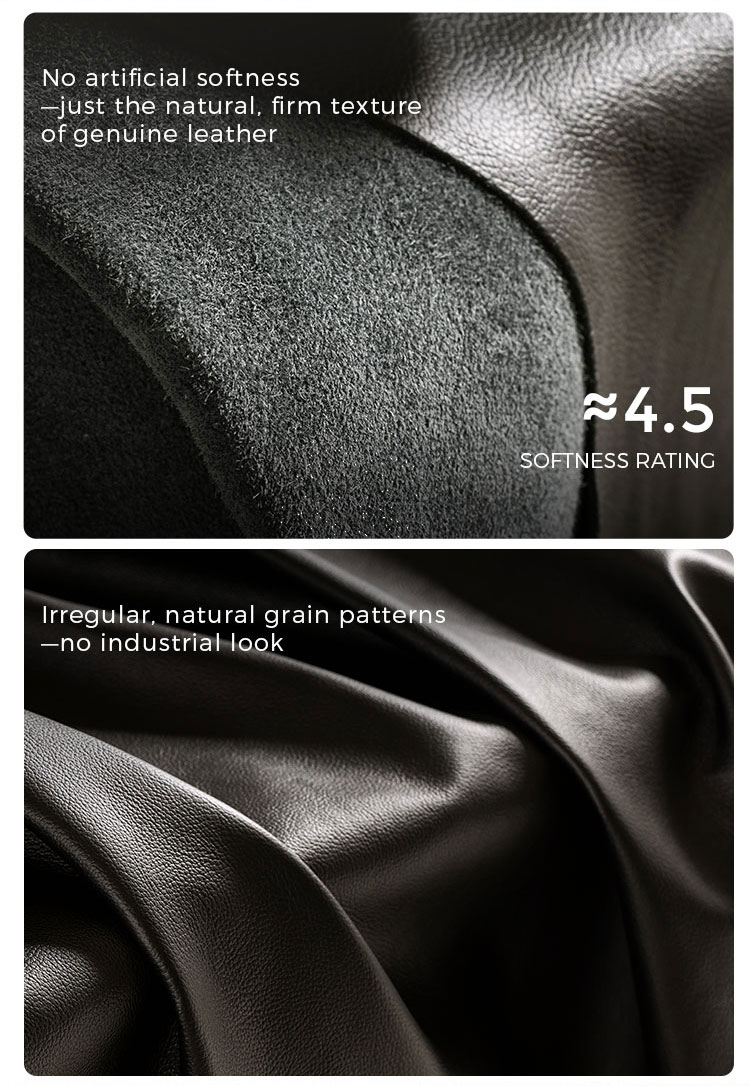 Leather Surface: Wrapped in high-quality top grain leather, offering a soft touch, and a sophisticated low-sheen finish.