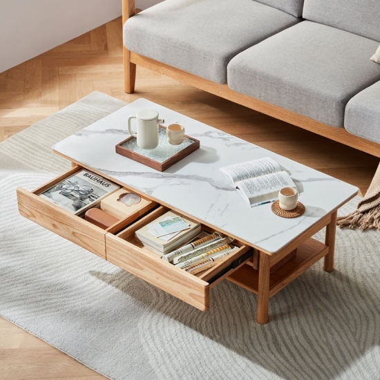 Elevate your living space with this exquisite marble-top rectangle coffee table. Featuring a luxurious marble surface with unique natural veining, each piece is one-of-a-kind, adding a touch of sophistication to your home. The rectangular design offers a sleek and modern silhouette, perfect for contemporary or classic interiors.