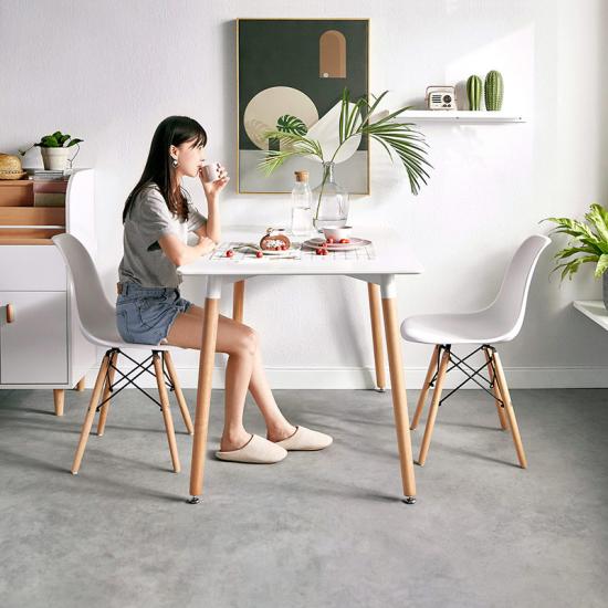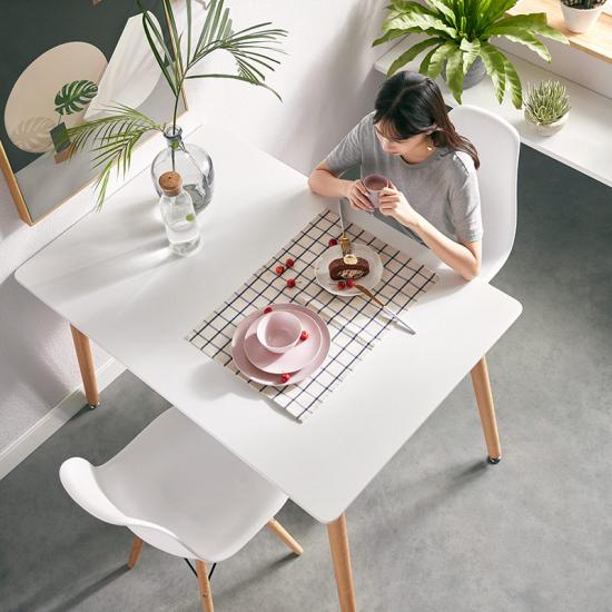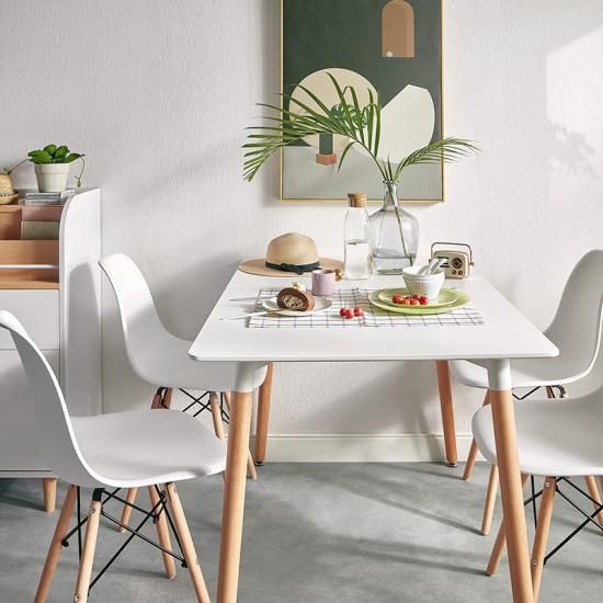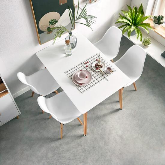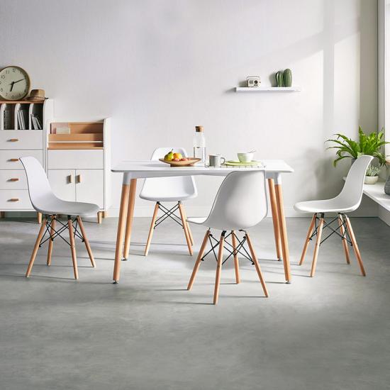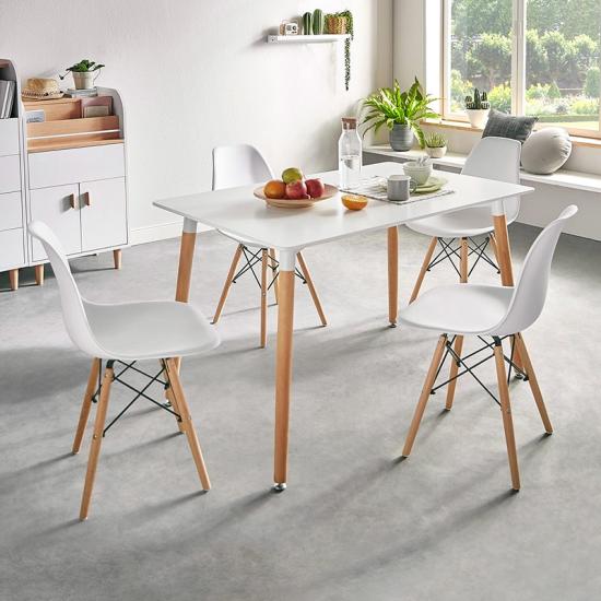 Modern Dining Table Set for 4 Mid Century Style, Beech, and White Color LS179R1-A