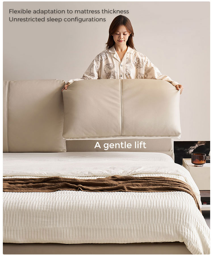 Elevate your bedroom with the LINSY Soft Beige Leather Bed, where luxury meets contemporary design. Crafted from premium, supple beige leather, this headboard offers a smooth, velvety touch that brings instant warmth and sophistication to any modern bedroom.