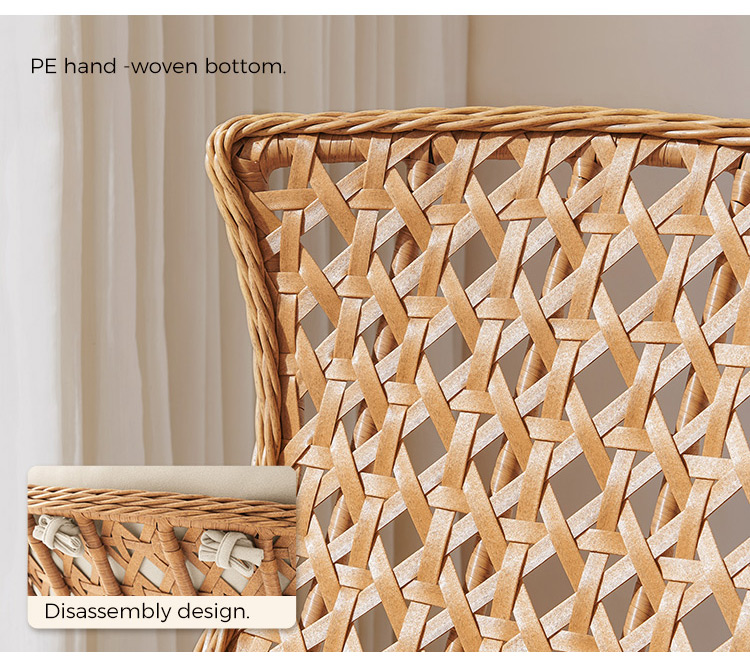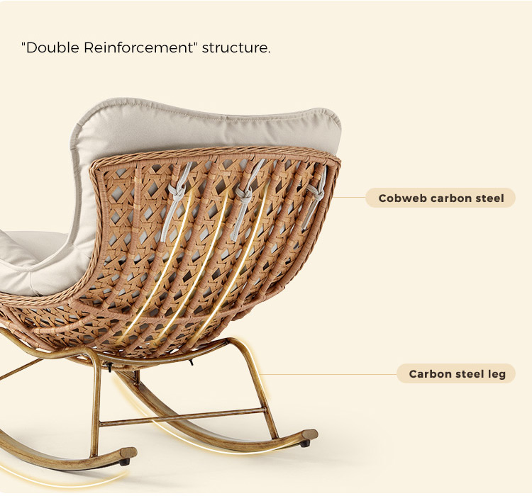 Our rattan rocking chair is a true celebration of nature's beauty and craftsmanship. Made from sustainably sourced rattan fibers, each chair is unique in its natural variations, adding a touch of organic charm to your living space. The intricate weaving patterns showcase the skill and artistry of the craftsmen, allowing you to bring a piece of nature indoors.