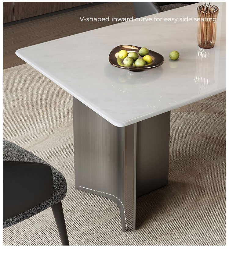 Upgrade your dining experience with LINSY's stunning rectangular table, blending natural stone beauty with industrial strength. The luxury stone top is paired with a high-grade stainless steel base for a look that is as sturdy as it is stylish. Designed for modern living, its heat-resistant and easy-to-clean surface makes it the perfect centerpiece for busy households, available in both 1.6m and 1.8m sizes to suit your home.