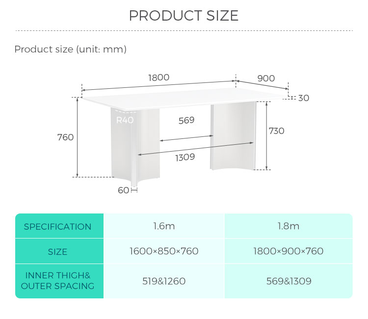 Versatile Sizing Options: Available in two lengths (1.6m and 1.8m) to perfectly fit your space and seating requirements (6-8 people).