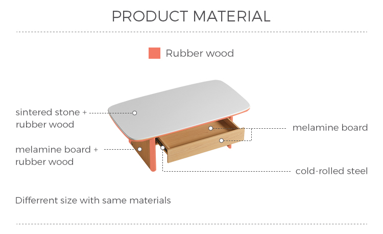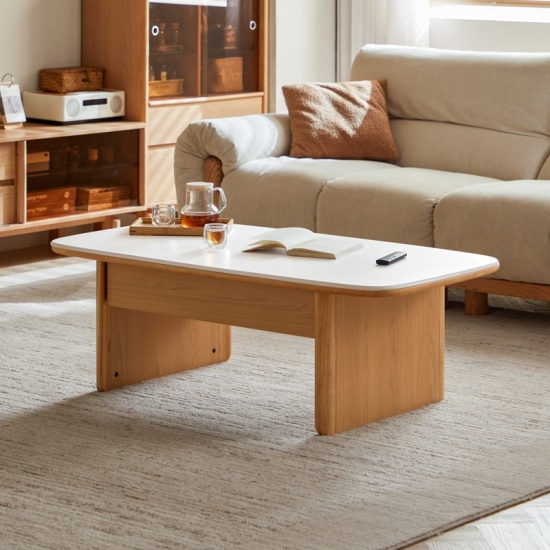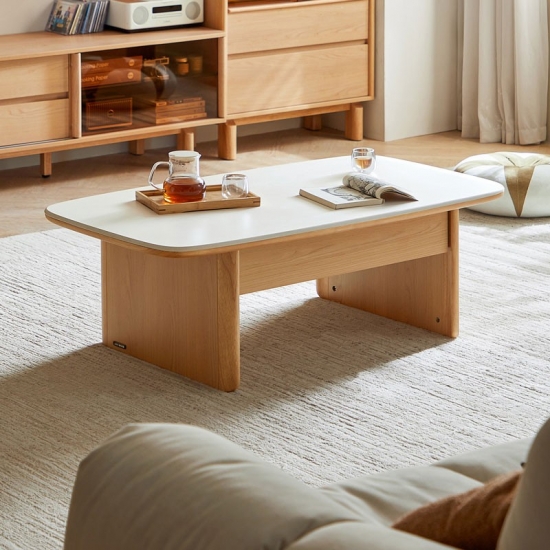 7Modern Rectangular Solid Wood and Sintered Stone Coffee Table UB1L-A