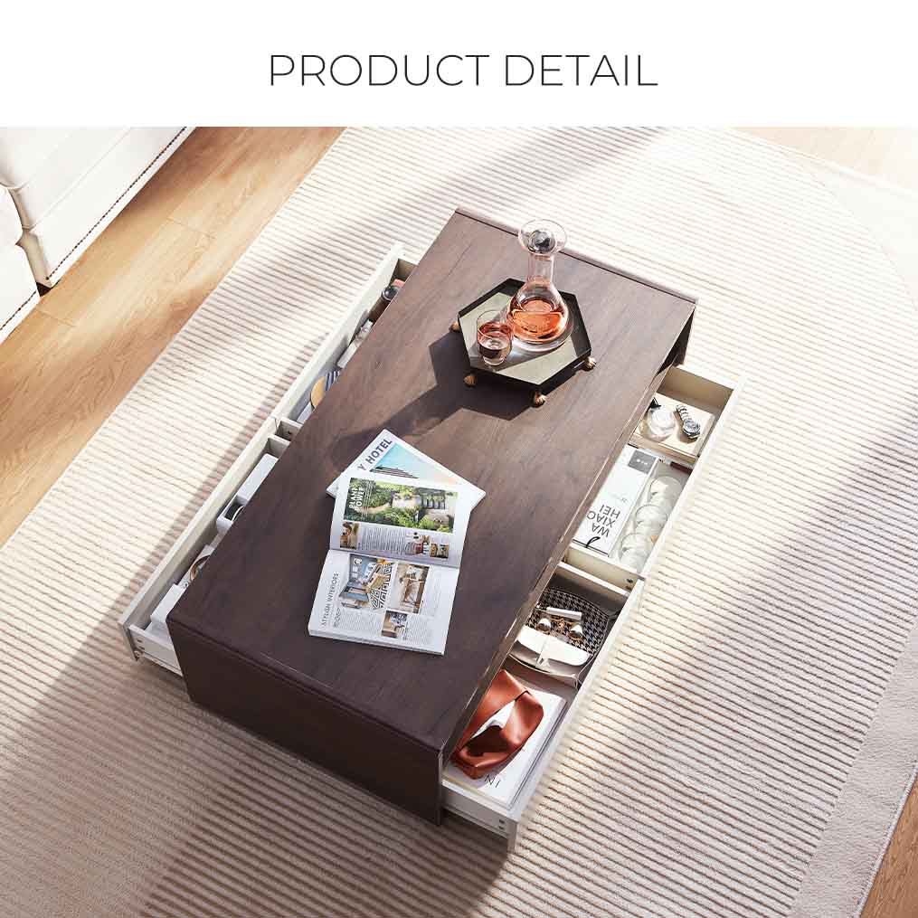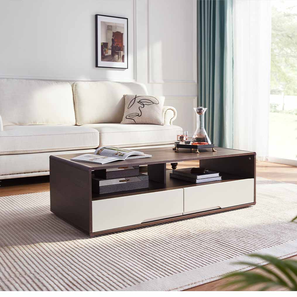 White Color Solid Wood Rectangle Coffee Table with Drawers DW2L-HWIf you are interested in our products and want to know more details,please leave a message here,we will reply you as soon as we can.