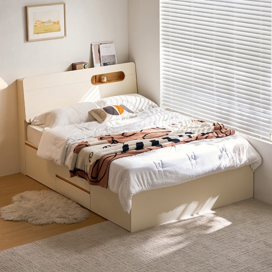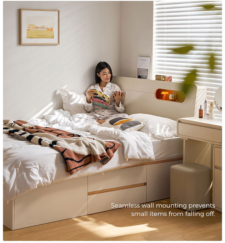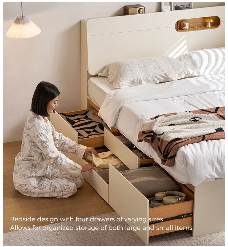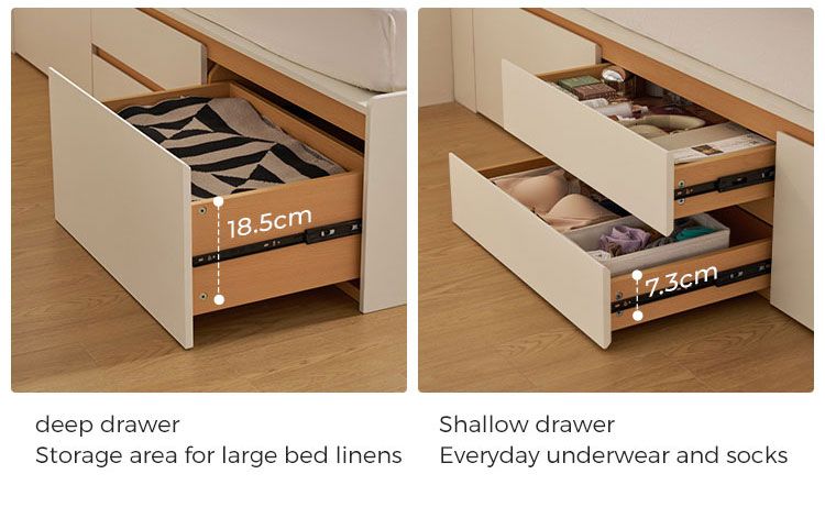 Integrated Storage Solution: Features spacious pull-out drawers or lift-up compartments along both sides, providing ample hidden storage for bedding, seasonal clothing, or personal items without sacrificing floor space.