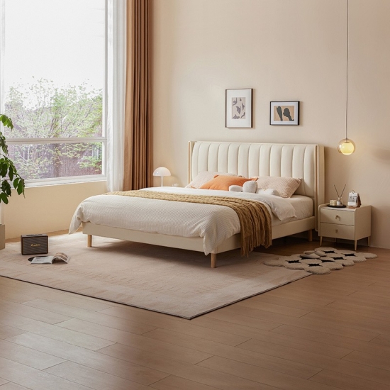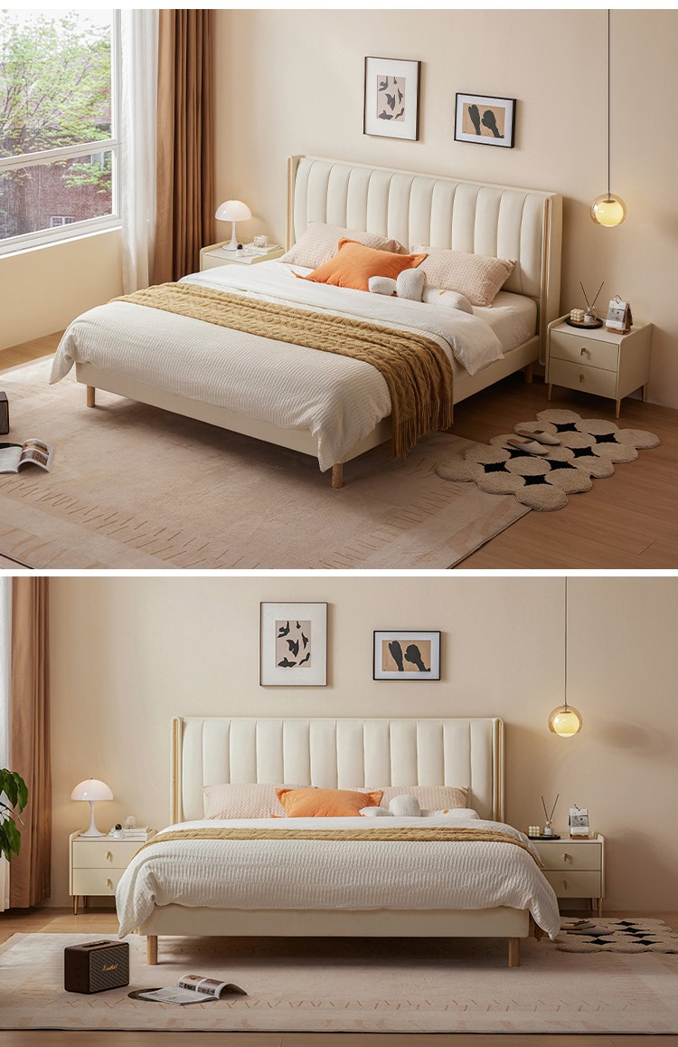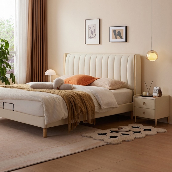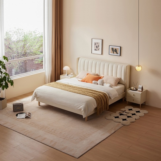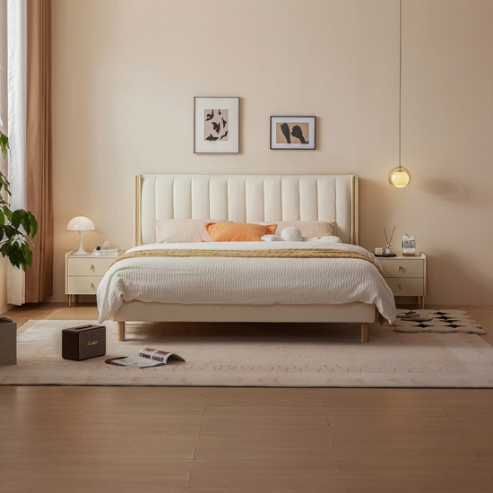 Nordic Design Cheese White Double Bed with Leather TBC930-A |