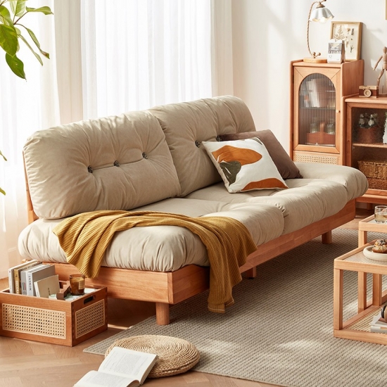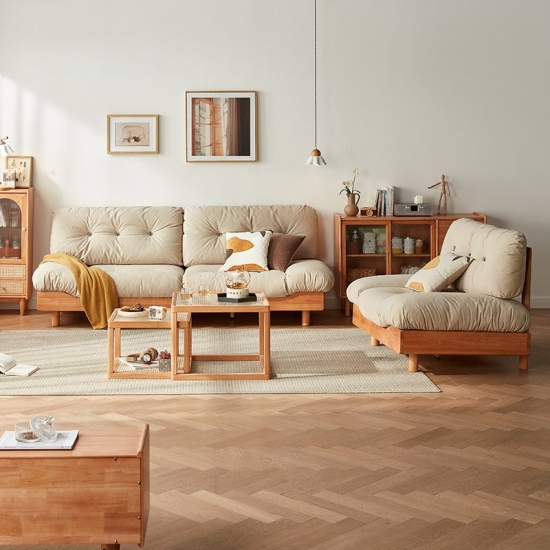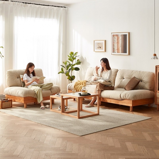 7Nordic Style Living Room Sofa Set Wooden Couch with Fabric NN1K