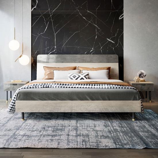 7Nordic Style Moon Surface Designs Headboard Platform Bed Frame with Wood Slats FC1A