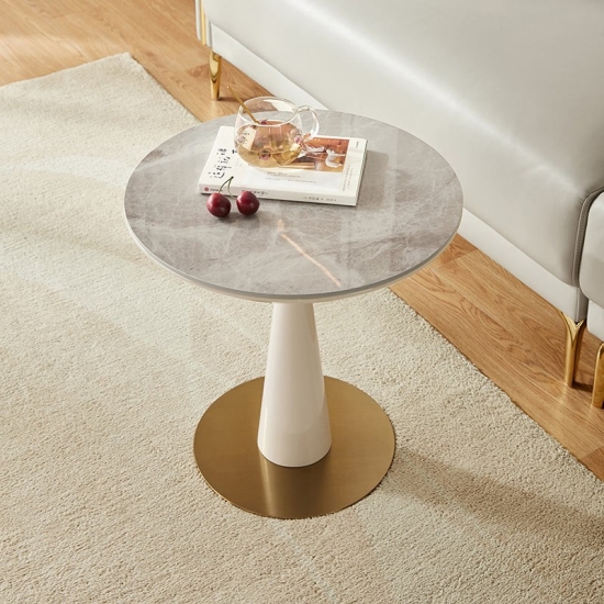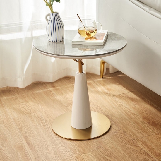 7Modern Small White&Gold Round Side Tables